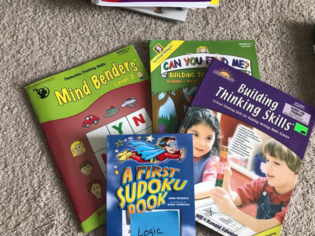 Critical thinking and logic skills are a daily routine for us and I have chosen to use Lollipop Logic, Can You Find Me, Building Thinking Skills and Mind Benders from the Critical Thinking Company. We also have a variety of Thinkfun, Smart Games and MiniLuk products. I also have a few crossword puzzles and Sudoku books.