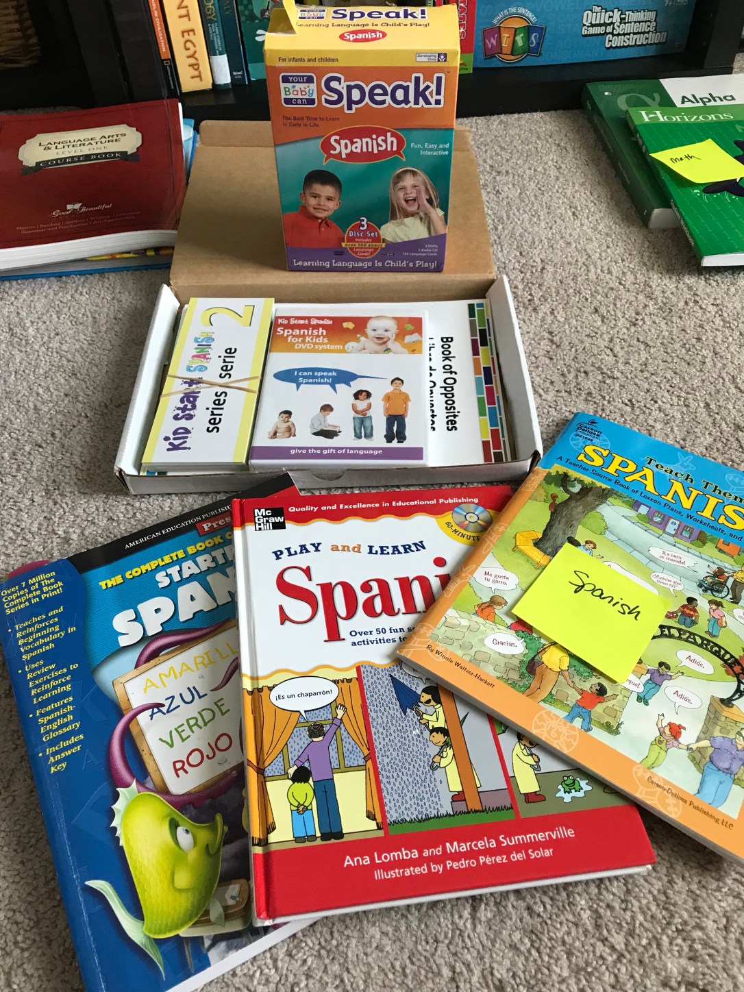 For Spanish this year we are using various materials. Again keeping with my goal of creating more of a literature based focus, I have complied a library list of bilingual books for us. I am also going to make more of an effort of speaking to him in Spanish more often, as well as reading and writing in Spanish.