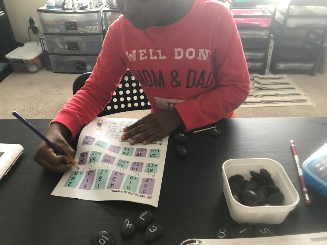 We kick the day off with Math! Why you may ask? Math is the area of study we are really concentrating on this year. I needed this subject to be first because his mind is ready and sharp! Math is divided into 3 areas: