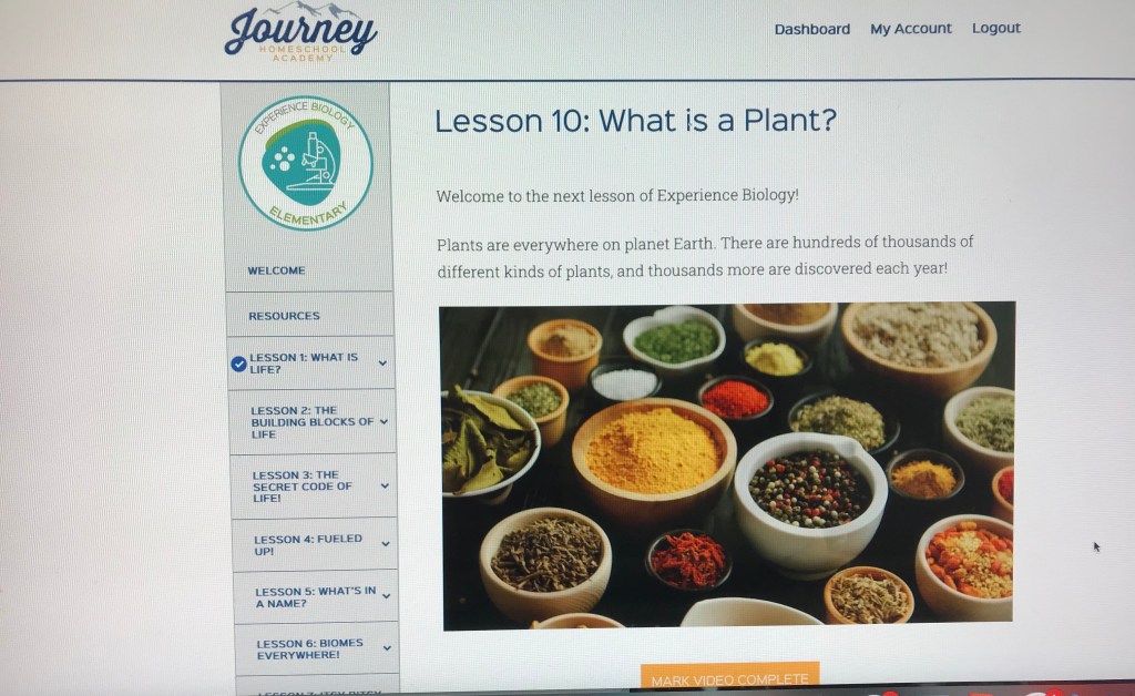 Journey Homeschool Academy Experience Biology: Elementary is a virtual online elementary biology class geared for students ages 6-12. There are 30 lessons that can be done in 15 minutes or longer depending on how you navigate the lessons. For us we paired it what were studying in our science curriculum about plants and I used it as an introduction to our science unit to help in laying foundations and we built around it. The lesson are meant to be done in order but you can adapt them to work for you if you are studying a particular area of study in biology.
