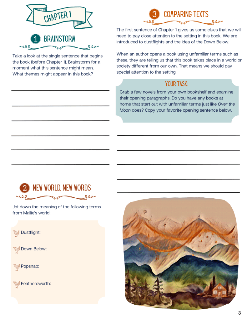 I also appreciated the inclusion of color and illustrations in this level. It breaks up the text, makes the pages more inviting, and adds visual interest. Middle schoolers benefit from a layout that’s clean but not dull, and Lightning Lit hit the sweet spot.