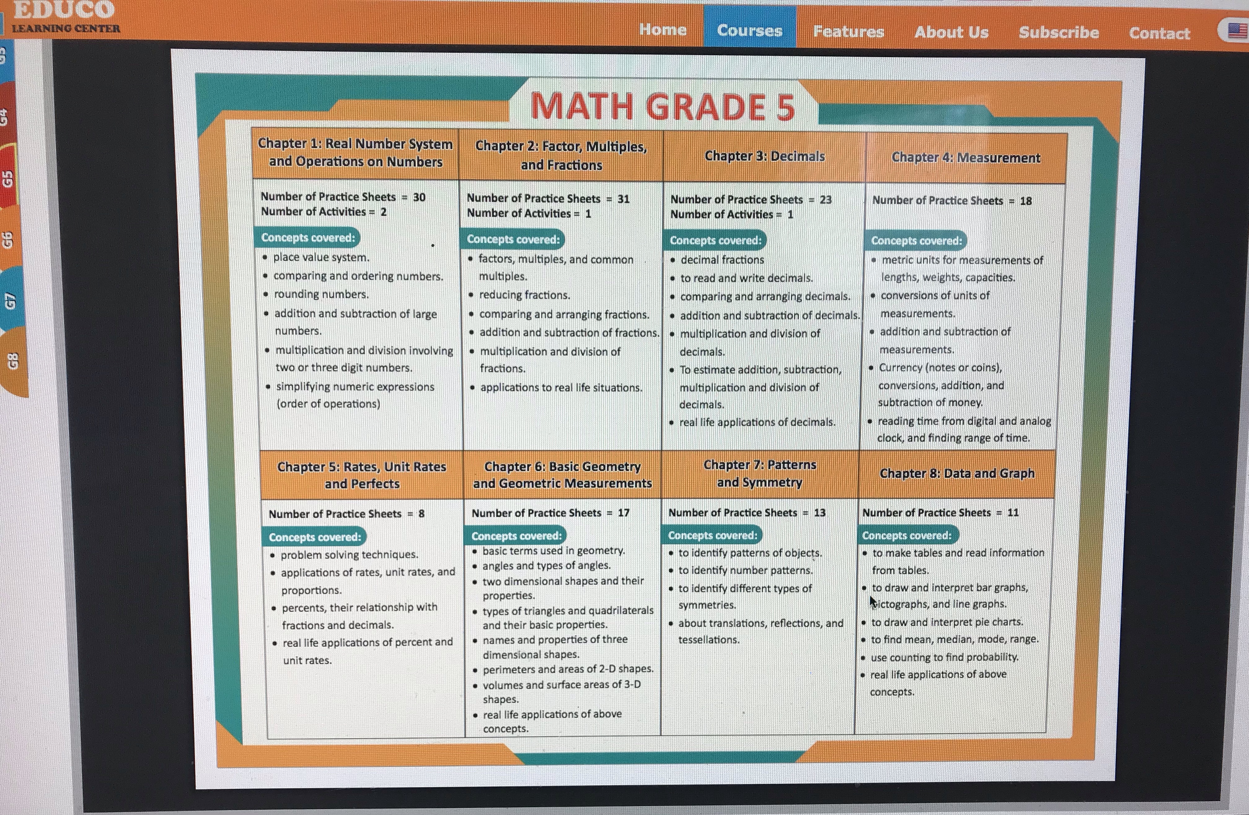 Educo Learning Center provides a comprehensive common core math program. The program provides students with questions that correspond with the workbook. If your student isn’t familiar with common core math, there may be a little of a learning curve for your student. We received the 5th-grade level and my student is familiar with many of the concepts but the concepts were taught differently. The 5th grade level of Educo Learning Center covers: